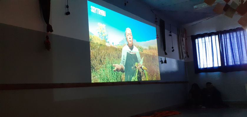 Acción artística, baile, canto y proyección de audiovisuales para acompañar el desarrollo de 4 CONSIGNAS que tienen por objetivo iniciar un camino de regreso, una búsqueda hacia nuestros ancestros y ancestras del ABYA YALA, de los Pueblos originarios que habitaron este continente.